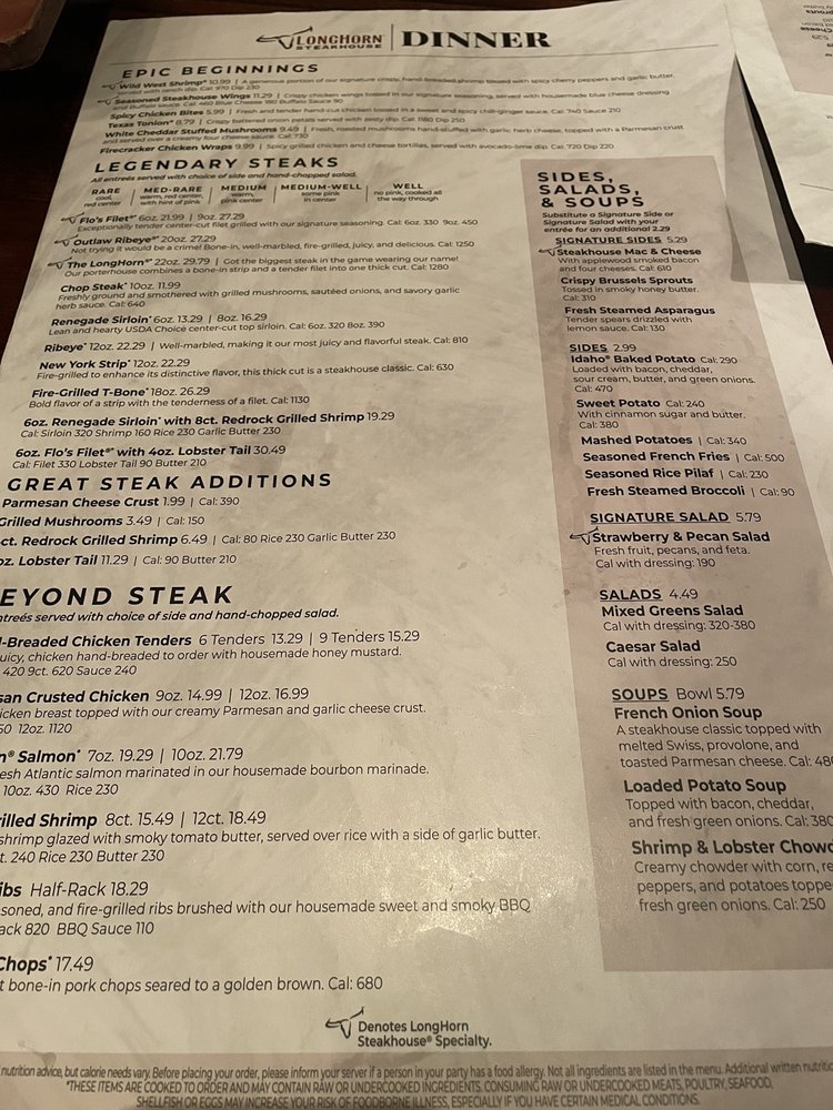 LongHorn Steakhouse Greenville Menu (Update 2025)